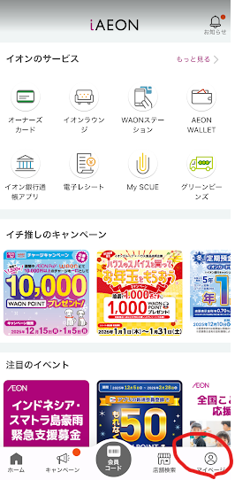①I AEONアプリを開く