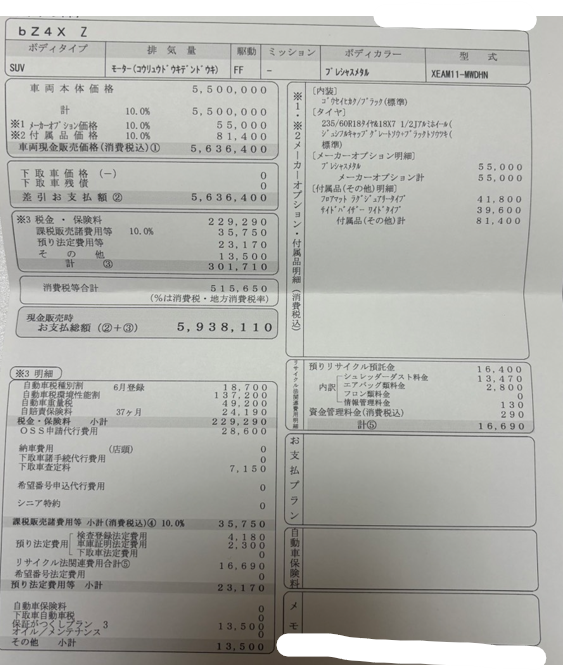 - 現金支払総額:5,938,110円